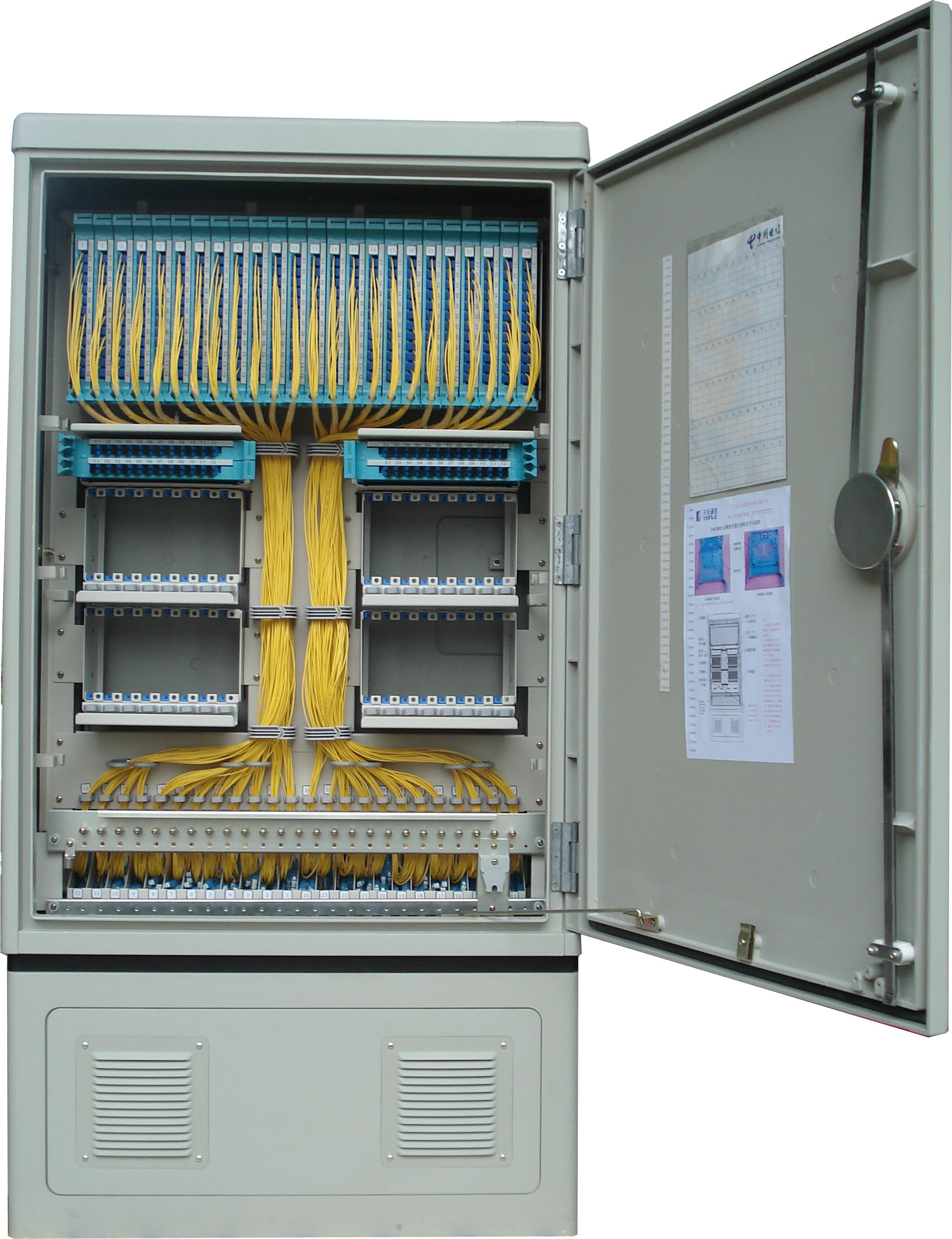 GP05-1系列无跳接光缆交接箱是FTTH中安装在道路旁、园区内等位置,内部安装分光器,可以实现光纤的熔接、存储、端接、光分路器的安置以及入户光缆的布放等功能的箱体。