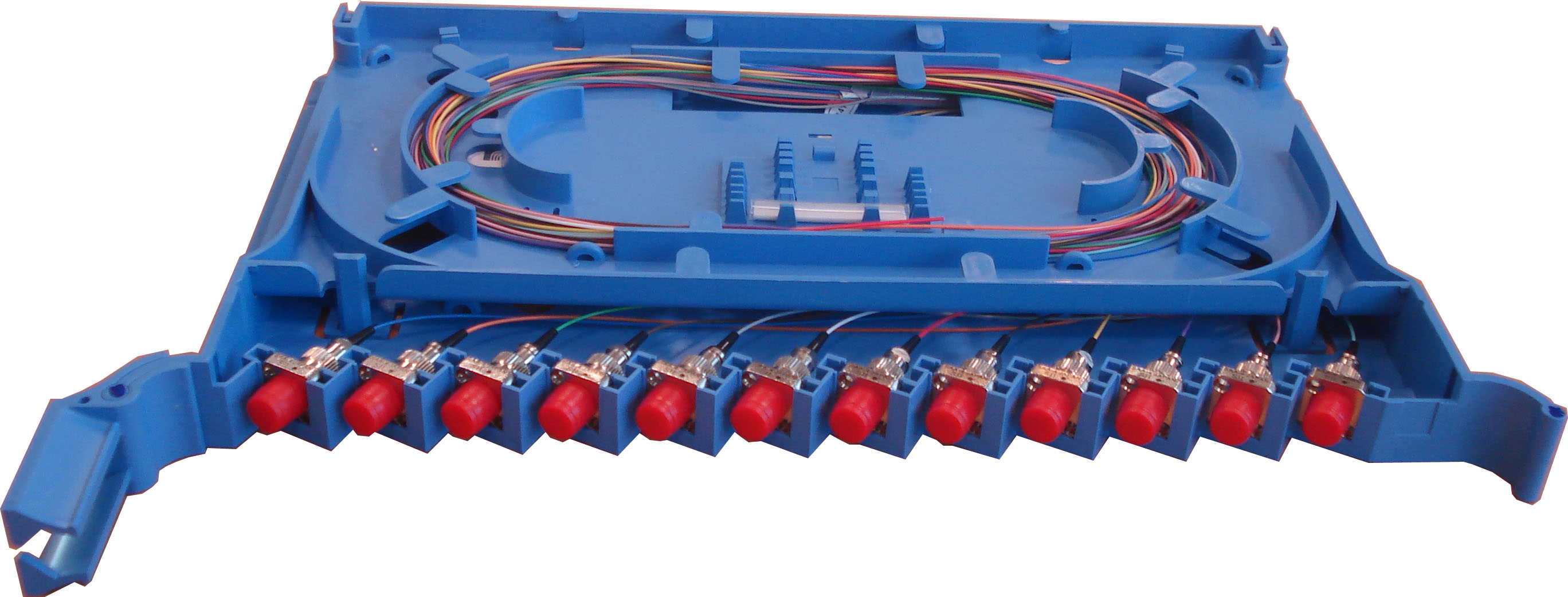 ● 适配器呈斜角卡式安装,既保证了光纤的弯曲半径,又可以避免强光灼伤眼睛。
